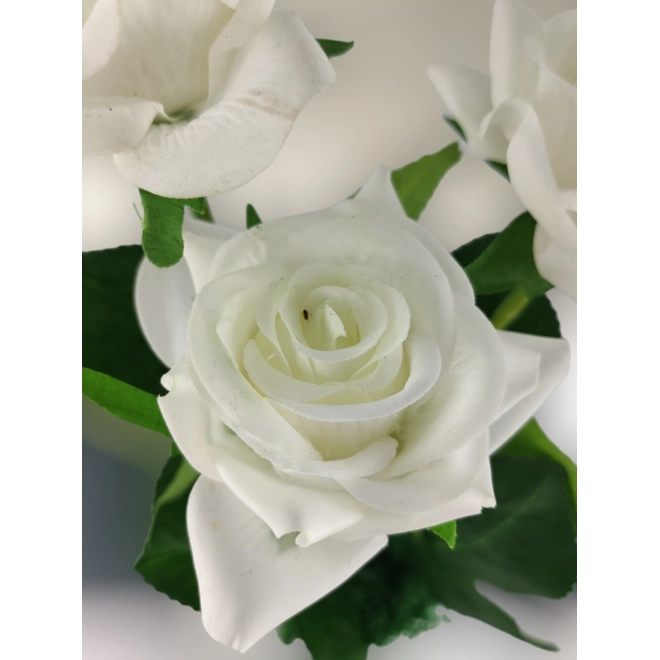 Fehér Real Touch rózsák pasztellszínű agyagkaspóban izlandi mohaágyon.