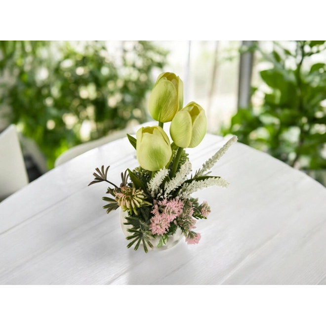 Zöldes krém tulipánok kerámiakaspóban TUG318KRZO